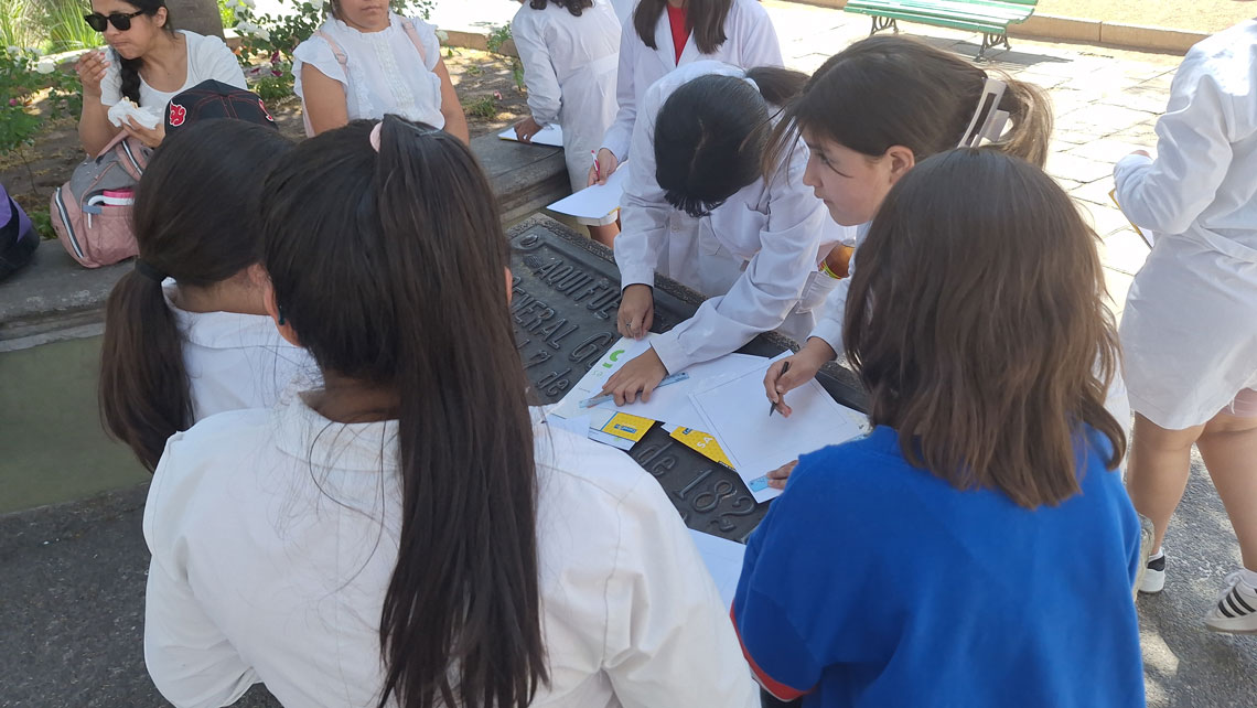 Los alumnos de 6º grado “D” del turno tarde de la Escuela Nº 4.007 Martín Miguel de Güemes, participaron de una enriquecedora jornada de investigación en la Plaza Belgrano, donde asumieron el rol de Exploradores de la Naturaleza. La actividad se desarrolló con motivo del "Día del Árbol", celebrado en agosto, en el marco del programa Ciencia en Movimiento, impulsado por la Subsecretaría de Políticas Socioeducativas.