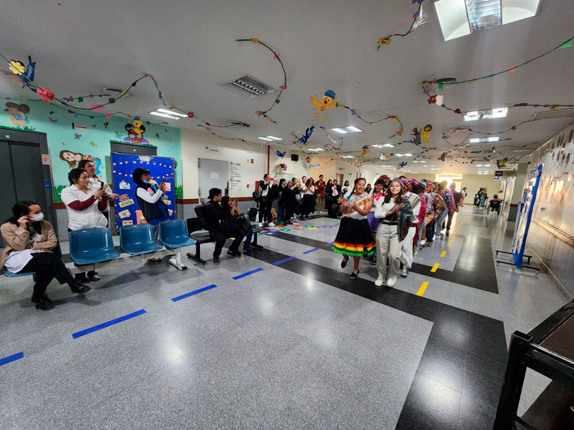 La jornada estuvo cargada de simbolismo ancestral. Se celebró una emotiva ceremonia de ofrenda a la Pachamama, en la que se honró a la Madre Tierra con el propósito de aliviar la carga emocional, enseñar desde el afecto y sembrar esperanza en los pacientes del Hospital Materno Infantil.