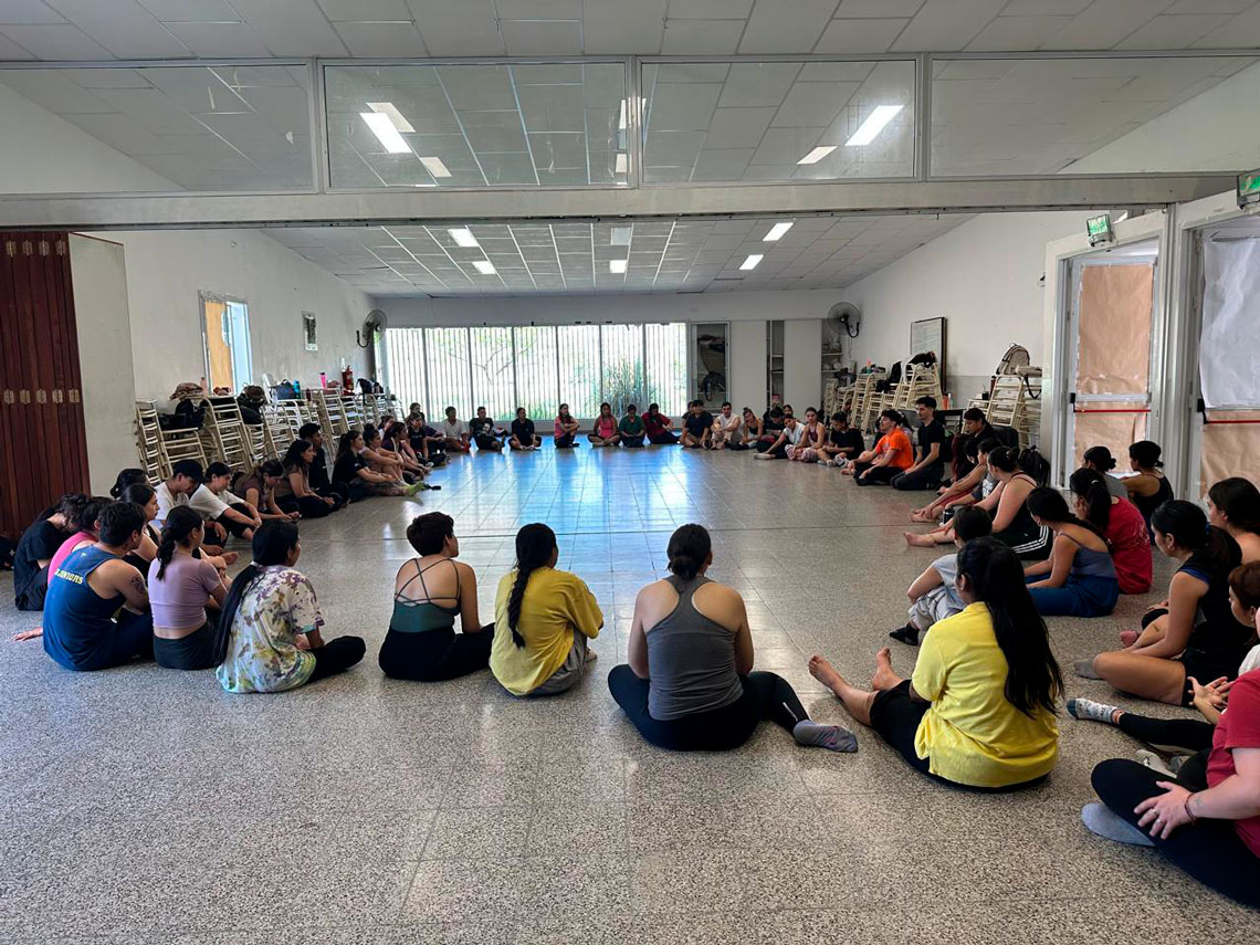 La actividad formativa se desarrolló en el marco del acompañamiento a las trayectorias educativas, abordando ejercicios técnicos y dinámicas sensoriales, donde la escucha corporal y la improvisación se convierten en herramientas que fortalecen el vínculo con el arte.