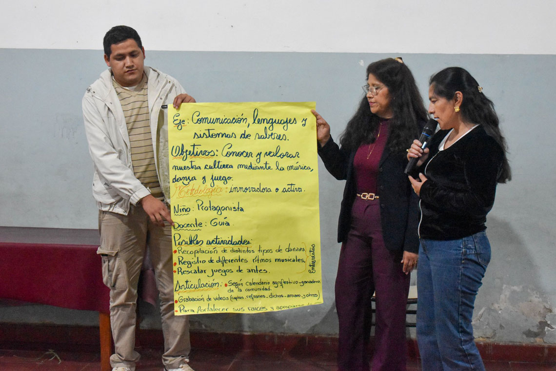 El cierre de la jornada incluyó la puesta en común de las producciones grupales, con el fin de acompañar y fortalecer el diseño de propuestas pedagógicas interculturales comunitarias que integren la normativa curricular vigente, especialmente en escuelas con matrícula del pueblo kolla.