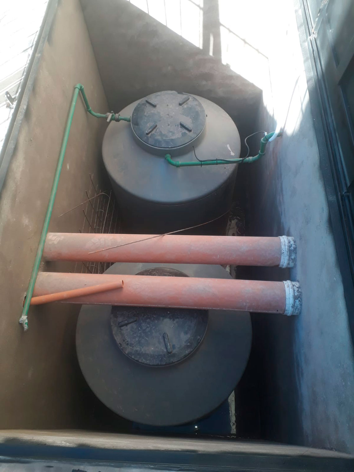 Se construyó un gabinete enterrado y se instaló dos tanques cisternas de 1.100 litros cada uno, provisión e instalación de una bomba centrífuga de 2 ½ , automatización de los tanques y colocación de una reja de hierro en perímetro y puerta de acceso a cisterna. Cabe destacar que los trabajos fueron contratados mediante la ley N° 8.072.