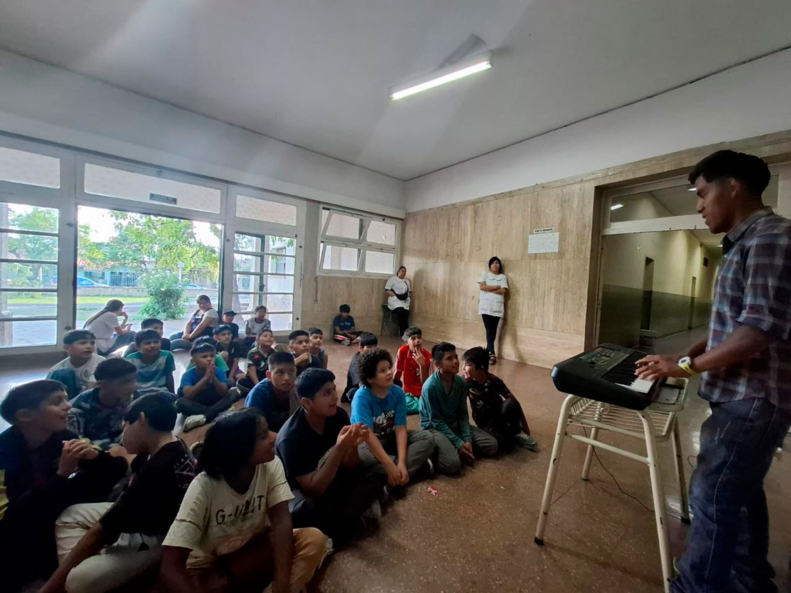 Esta propuesta se desarrolló en articulación con la Dirección del Hogar Escuela, lo que permitió que la música se integre a la vida cotidiana de los niños y niñas de la institución, consolidándose como un espacio de contención, motivación y fortalecimiento de las trayectorias educativas.